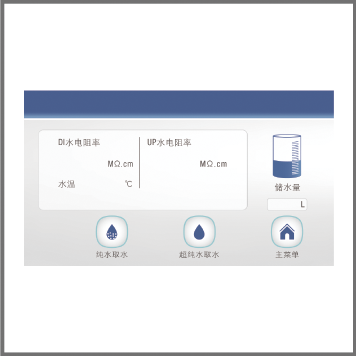 主機3路水質(zhì)和2路流量監(jiān)控 RO、DI、UP超純水3路水質(zhì)實時監(jiān)控,無需取水即可查看水質(zhì). 2路高精度定量(10-999999ml)、定質(zhì)(0~18.25MΩ.cm)取水功能. | ![]() |